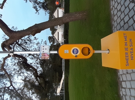 In mei 2022 kaartte Gemeenteraadslid Tom Vranckx de problematiek rond huidkanker aan in het kader van de campagne van de Vlaamse overheid "smeerweer". Een punt dat we toen aanhaalden was de plaatsing van dispensers met gratis zonnecrème op enkele openbare plaatsen. Deze palen geven de UV straling van het moment aan, vermelden preventieve tips tegen zonnebrand en verdelen dus ook zonnecrème. Wat zeer handig is als er onverwacht een sterkere zon staat dan verwacht of als je de eigen zonnecrème vergeten bent. Onze fractie is dan ook blij dat er nu, 2 jaar na onze vraag, in de speeltuin van de Keiheuvel toch een dispenser geplaatst is. Graag willen we dat er ook dispensers op andere openbare plekken geplaatst worden, alsook het beschikbaar stellen van mobiele en uitleenbare exemplaren om te plaatsen op evenementen.