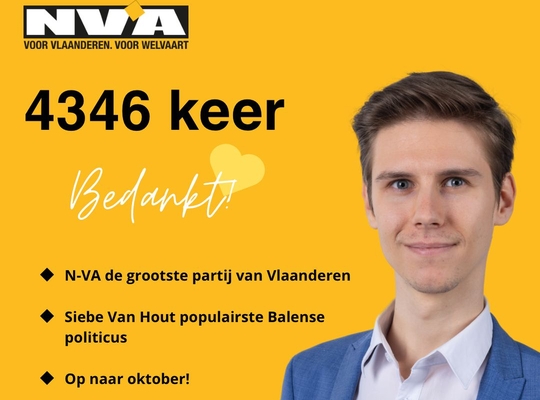 Siebe Van Hout zal ook de lijst trekken voor N-VA Balen-Olmen bij de gemeenteraadsverkiezingen in oktober. “Het vertrouwen van de Balenaars en Olmenaars is hartverwarmend en geeft ons de kracht om ook in oktober volop te gaan voor een warme gemeente. Ik wil dan ook alle Balenaars en Olmenaars bedanken die mij het vertrouwen gaven, evenals iedereen uit het campagneteam die dit mogelijk hebben gemaakt. Bedankt Balen-Olmen!” aldus Siebe.