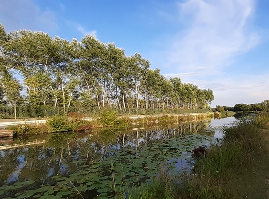 Op hetzelfde kanaal een paar kilometer verder, in de richting van en in de kom van Leopoldsburg gaan beide ontspanningen wel hand in hand, hier wordt er zelfs tussen de boten gevist en het kanaal is er niet breder.